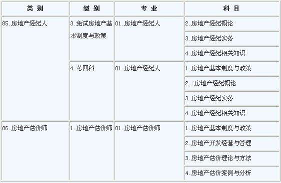 (二)房地產(chǎn)經(jīng)紀(jì)人考試設(shè):《房地產(chǎn)基本制度與政策》、《房地產(chǎn)經(jīng)紀(jì)概論》、《房地產(chǎn)經(jīng)紀(jì)實(shí)務(wù)》、《房地產(chǎn)經(jīng)紀(jì)相關(guān)知識(shí)》4個(gè)科目。