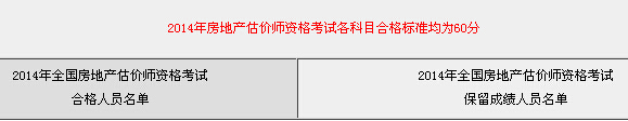 2014年房地產估價師資格考試各科目合格標準均為60分(各科目試卷滿分均為100分)。