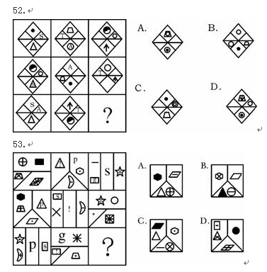 (一)請從所給的四個選擇項中,選擇最適合的一個填在問號處,使之呈現一定的規律性。