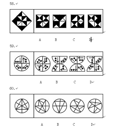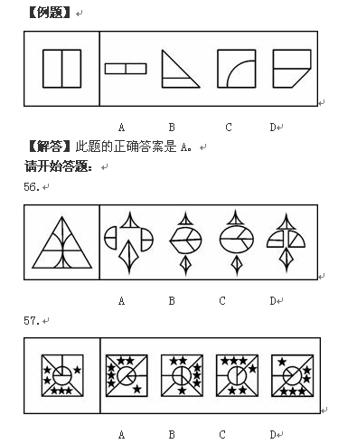 (二)左邊的圖形由若干個元素組成。右邊的備選圖形中只有一個是由組成左邊圖形的元素組成的,請選出這一個。注意,組成新的圖形時,只能在同一平面上,方向、位置可能出現變化。