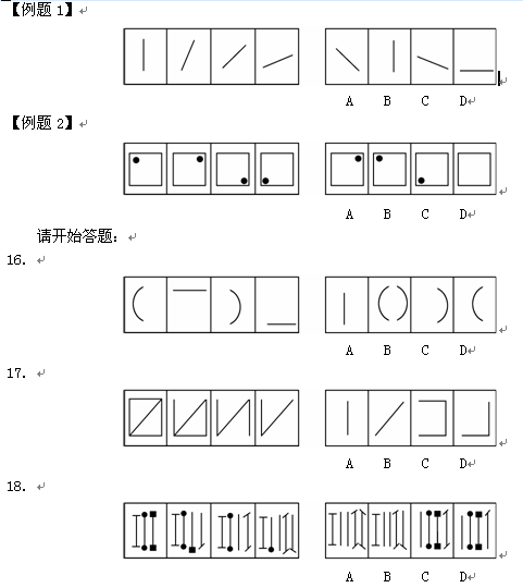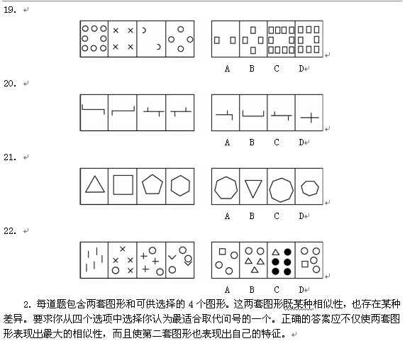 1.每道題目的左邊4個(gè)圖形呈現(xiàn)一定的規(guī)律性。你需要在右邊所給出的備選答案中選出一個(gè)最合理的正確答案。每道題只有一個(gè)正確答案。