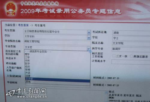 15日上午8時,2009年國家公務員考試正式接受網上報名。我市考生可登陸國家人力資源和社會保障部網站進行網上報名。