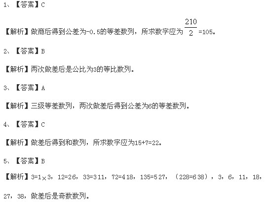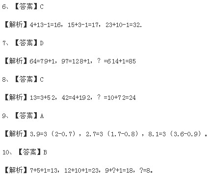 【解析】第一組圖形中,圖形角的數量逐次增加,分別為4、8、16;第二組前兩圖,圖形邊的數量逐次增加,分別為1、2,那么下圖應為4條邊,故答案為C。