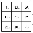 【解析】經過觀察可知第一行數比較大,則每一列的第一個數是由第二個數和第三個數推導出來的,即:第一個數=第二個數+第三個數+1,則答案等于X+9+1=18,X=8,選擇B項8。