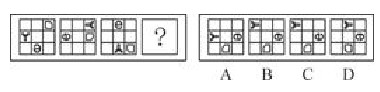 解析:考查位置旋轉。九宮格內的三幅圖沿外圍移動,同時自身順時針旋轉90度。其中,圖形每次移動三個格,圖形每次移動兩個格,圖形移動一個格。