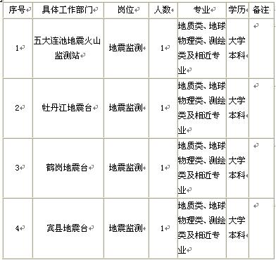 根據事業單位公開招聘的有關規定和事業發展的需要,黑龍江省地震局部分臺站2009年公開招聘應屆畢業生4名: