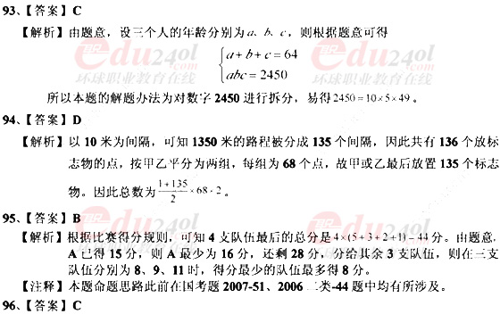 2009年天津湖北陜西行測數(shù)量關(guān)系答案解析