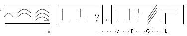 解答:正確答案為B。因為只有B能使兩套圖形具有相似性,僅僅元素不同,一個是實的曲線,一個是虛的直線,但兩組圖形中元素的排列規(guī)律完全相同。