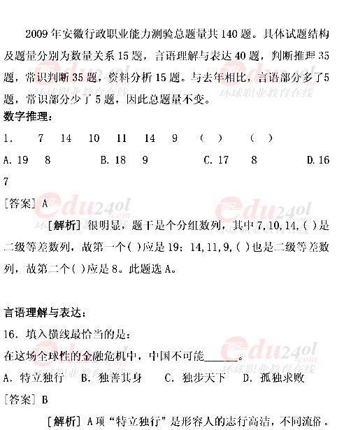安徽2009公務(wù)員考試行測真題結(jié)構(gòu)及部分解析