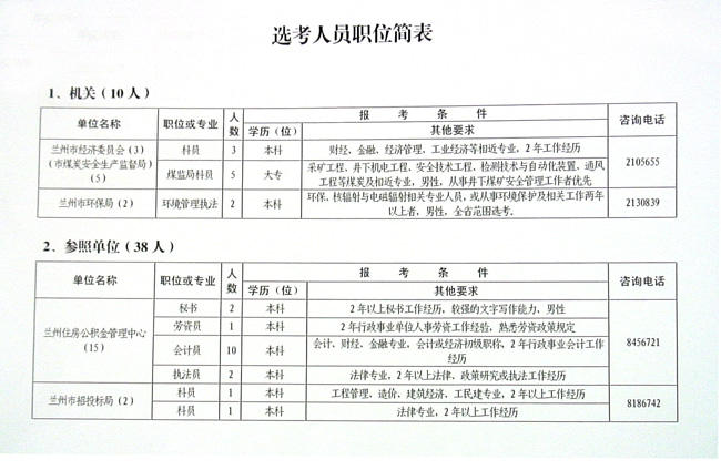 4.所在單位須為在蘭各級黨政機關或參照公務員法管理單位(個別崗位放寬至全省范圍,見《職位簡表》);