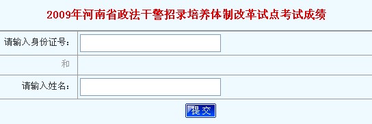 河南2009年政法干警招錄培養筆試成績查詢入口