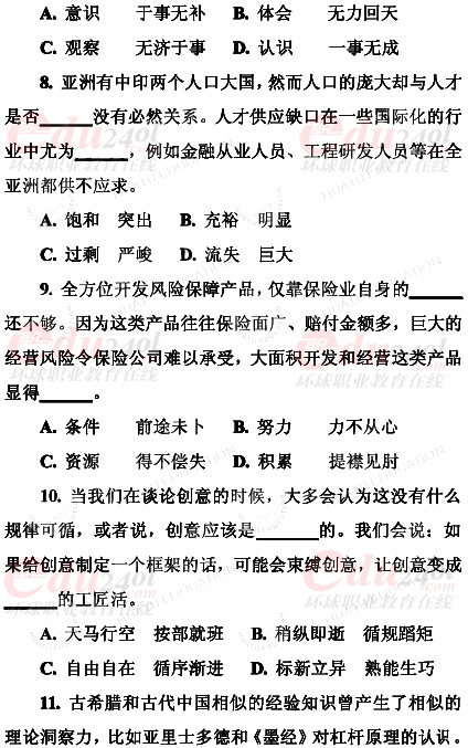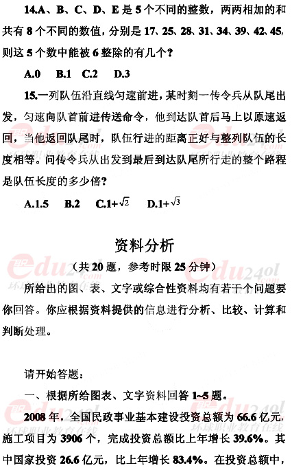 4月25日公務員考試《行政職業能力測驗》考試已結束,天津、重慶、內蒙、海南、遼寧、云南、湖南、 山東、陜西、 廣西、寧夏等十一地公務員考試行測真題一樣,部分題順有變動,網校特整理了部分真題及答案解析以供查閱。