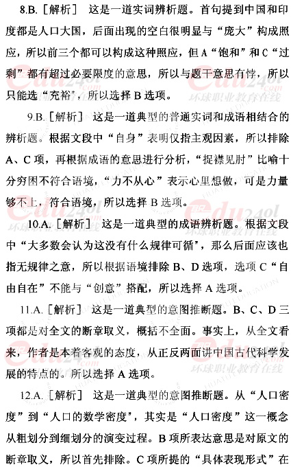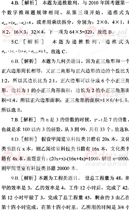 十一省公務(wù)員考試行政職業(yè)能力測(cè)驗(yàn)真題答案