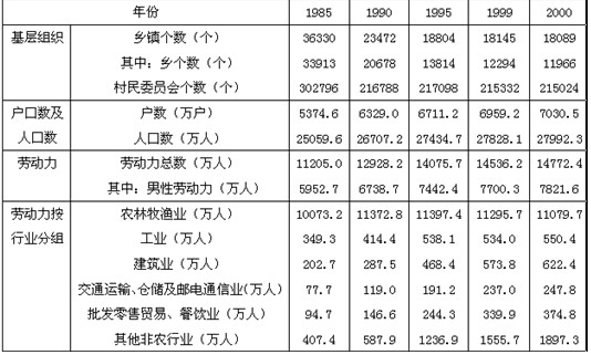 93.從1985年到2000年,農(nóng)村勞動力人數(shù)平均每年增加約多少萬人
