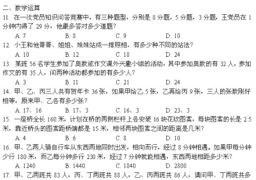 2007年貴州公務(wù)員考試行測(cè)真題:數(shù)量關(guān)系(2)