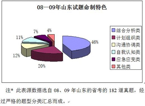 就題型而言, 山東公務(wù)員面試面試基本上是以自我認知、計劃組織、溝通協(xié)調(diào)型和綜合分析類面試題為基本的考察題型(詳見附圖)。但值得考生尤為注意的是,綜合分析類面試題在近年來出現(xiàn)了分量不斷加重的命題趨勢,考生在備考時一定要將此類題作為重點備考題型予以充分地準備。