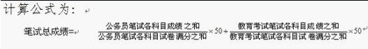 行政職業能力測驗、申論每科滿分均為100分。筆試成績的計算公式為: