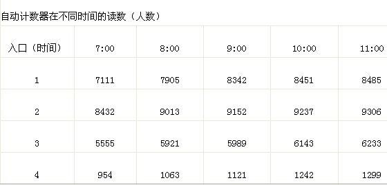 博物館四個入口處自動計數(shù)器的讀數(shù)