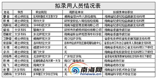 2010海南省直黨群和政協機關擬錄用人員進行公示