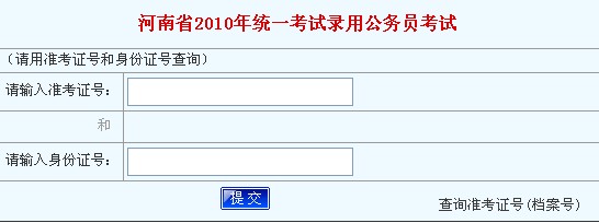 2010年河南公務員考試成績查詢入口