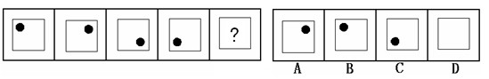 (答案:B。黑點在正方形中順時針移動。在第5個圖形中,應該正好移動到左上角。)