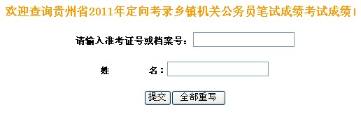 貴州省2011年定向考錄鄉鎮機關公務員筆試成績查詢入口>>>