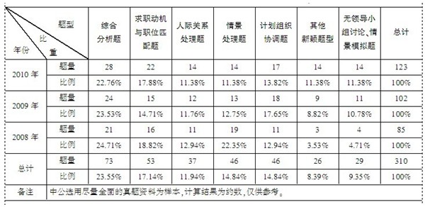 無領導小組討論、情景模擬題型基本是一場面試一道題。據不完全統計,2008年至2010年三年中,云南省公務員面試中無領導小組討論、情景模擬題的數量達到了29道,而隨著非結構化面試在云南面試中日益受到青睞,預期這一類題型的比重還會持續增加。