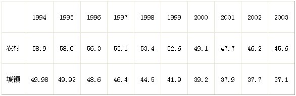 1994年~2003中國城鄉居民家庭恩格爾系數比較(單位:%)