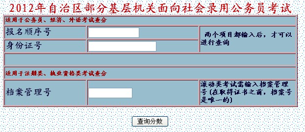 新疆2012年公務(wù)員考試成績查詢?nèi)肟?/STRONG>
