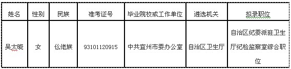 附:自治區衛生廳2012年度擬遴選公務員名單
