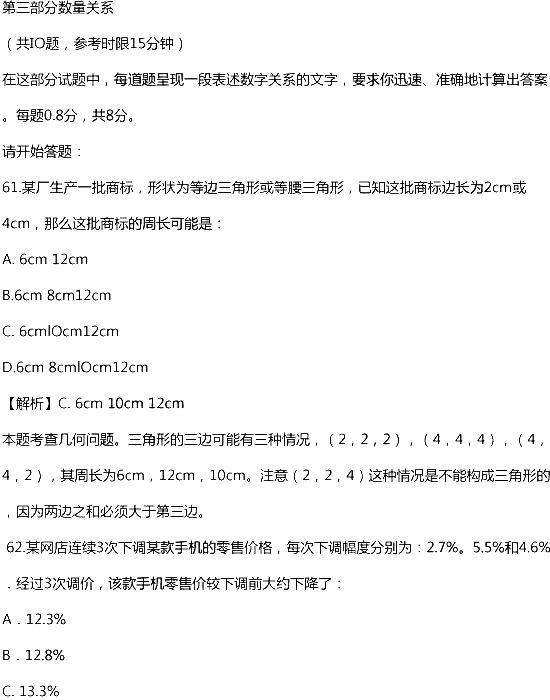 2012年915聯考福建省行測真題(數量關系)含答案解析