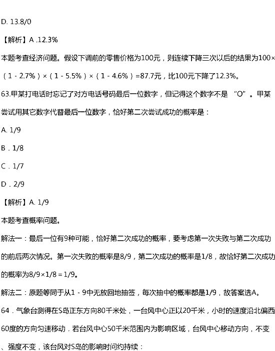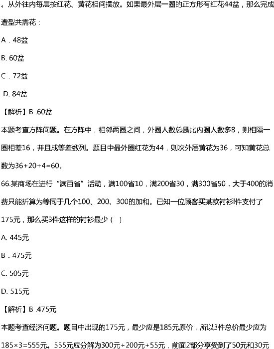摘要 915聯考福建省行測真題(數量關系)含答案解析