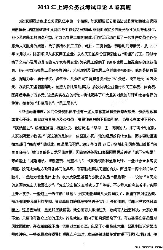 2013年上海公務員考試申論A卷真題