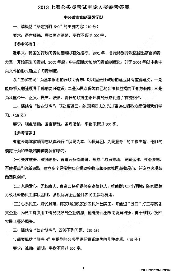 2013年上海市公務員考試《申論》答案及解析(A類)