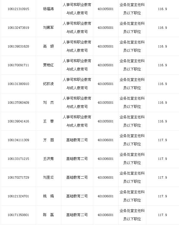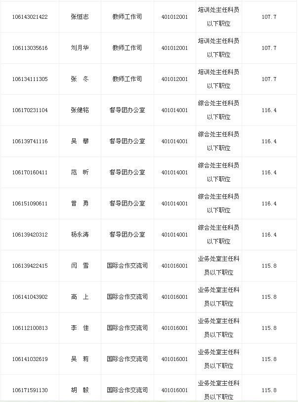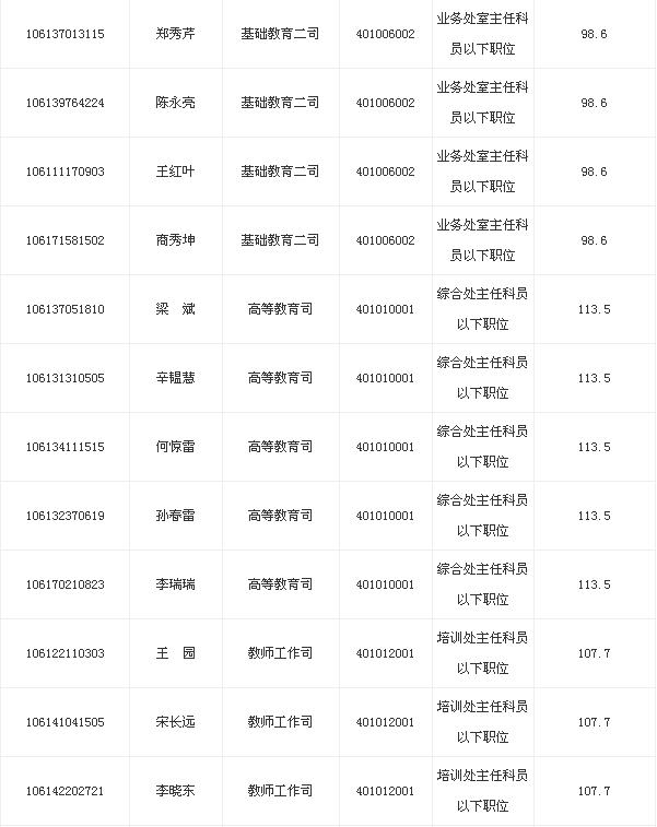 2013年教育部考試錄用公務(wù)員面試名單