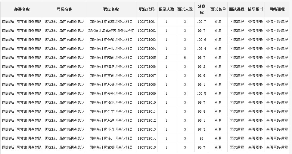 2013年國(guó)家統(tǒng)計(jì)局公務(wù)員面試公告:甘肅調(diào)查總隊(duì)