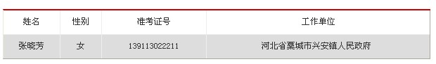 根據國家公務員考試錄用有關規定和要求,經過筆試、面試、體檢和考察等程序,擬錄用張曉芳為我署公務員,現予公示,公示期為2013年1月5日至1月11日。監督舉報電話:010-83138767、010-83138771、83138766。