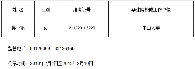 2012年廣州市擬錄用公務員公示名單(第十三批)