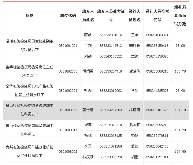 因部分進(jìn)入面試人員自愿放棄面試資格,現(xiàn)根據(jù)公務(wù)員考錄有關(guān)規(guī)定進(jìn)行遞補(bǔ)。遞補(bǔ)人員詳見下表: