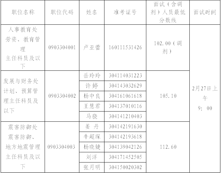根據人力資源和社會保障部、國家公務員局以及中國地震局關于中央機關及其直屬機構2013年度考試錄用公務員面試工作要求,現將山西省地震局2013年考試錄用公務員面試工作安排情況公告如下: