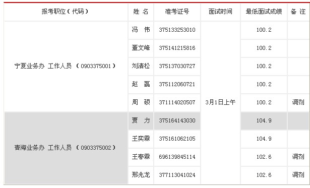 二、對已通過公共科目考試及參加調劑審核通過的考生,確定參加面試人員名單如下: