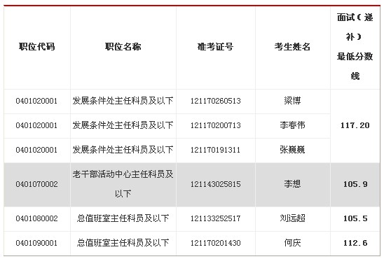 因部分進(jìn)入我部面試名單人員自愿放棄面試資格,根據(jù)公務(wù)員招考有關(guān)規(guī)定,按照公共科目筆試成績(jī)從高到低的順序,現(xiàn)將我部2013年度公務(wù)員考錄面試遞補(bǔ)人員名單公告如下: