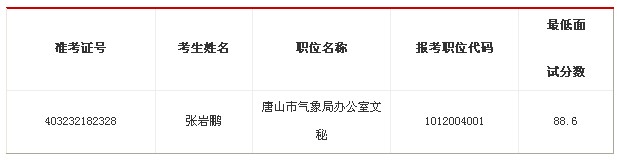 根據中組部、人力資源社會保障部、國家公務員局關于公務員考錄遞補工作的有關規定,因部分考生自愿放棄面試資格,按照考生公共科目筆試成績從高到低遞補的原則,經報中央公務員主管部門同意,遞補以下1名考生參加面試: