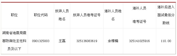 2013年國(guó)家公務(wù)員面試遞補(bǔ)公告:湖南省地震局