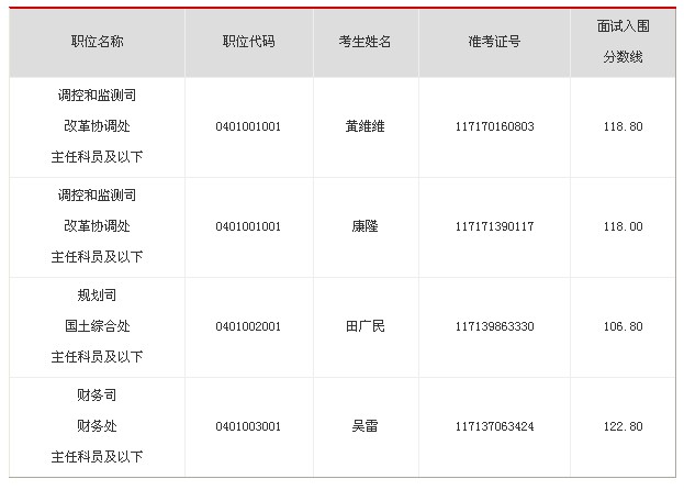 因部分考生放棄面試資格,根據(jù)公務(wù)員招考有關(guān)規(guī)定,擬在公共科目筆試合格的考生中,按照筆試成績從高到低的順序,遞補(bǔ)以下考生為面試人選: