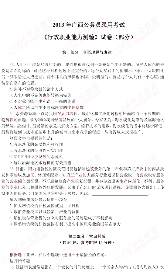 摘要 2013年廣西省公務員考試《行測》試卷(真題)