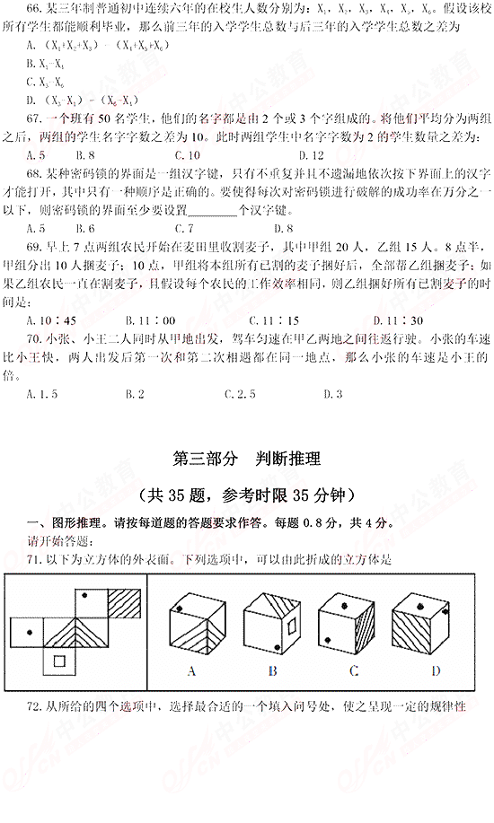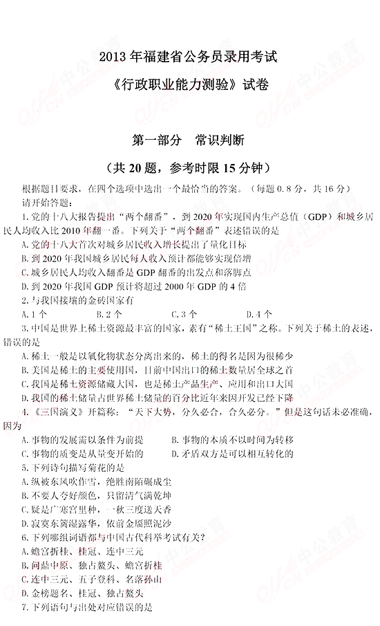 摘要 2013年福建省公務員考試《行測》試卷(真題)