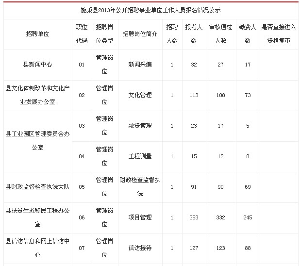 摘要 2013年貴州施秉縣事業單位招聘報名公示