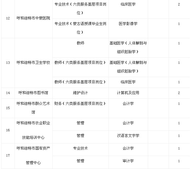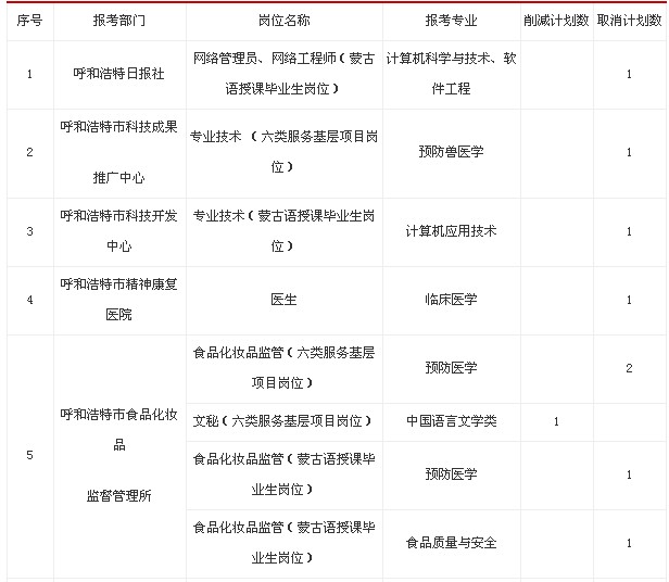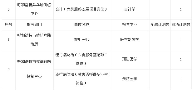 呼和浩特市2013年事業單位公開招考聘用工作人員取消或削減崗位: