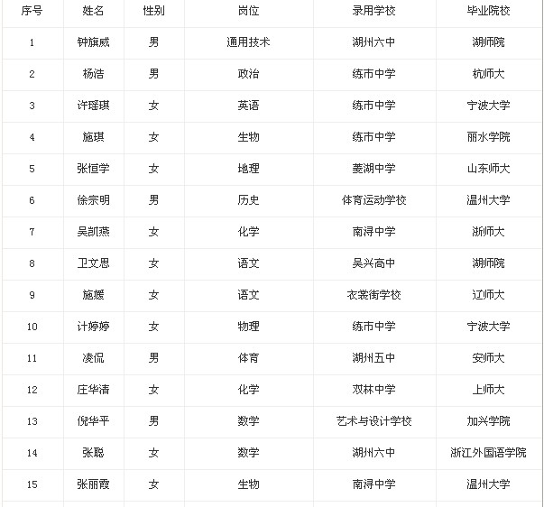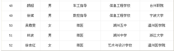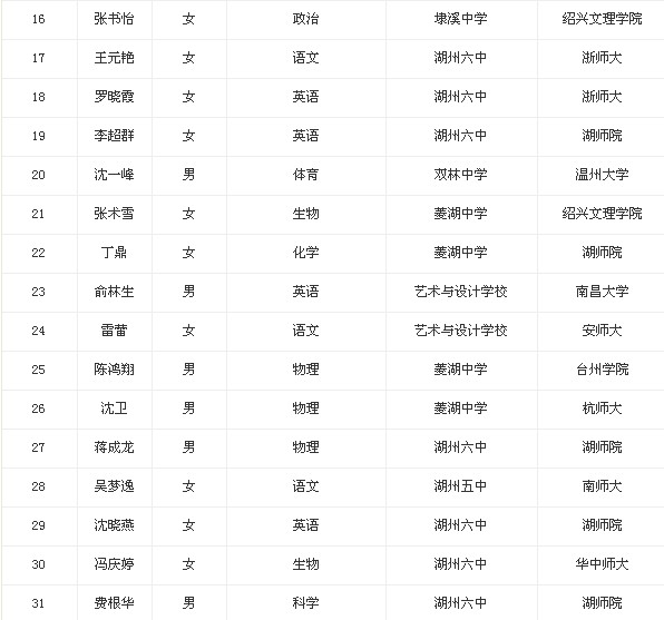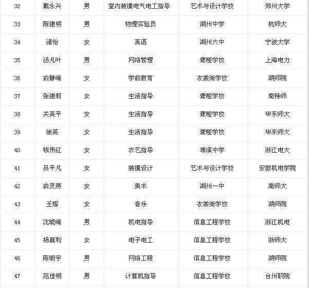 2013年浙江湖州市教育局市屬學校擬錄用教師名單